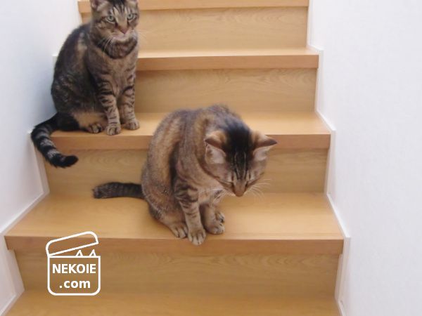 階段掃除中の私にずっと同行してくれていた兄猫たち。