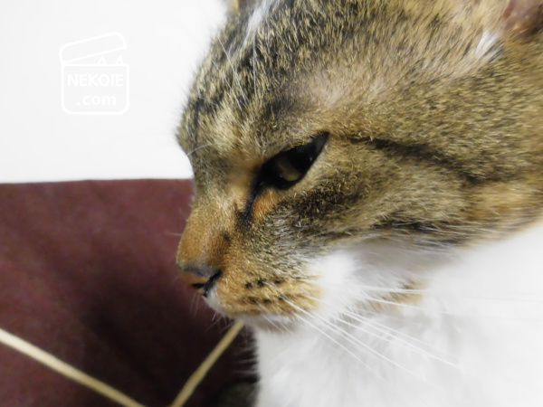 声をかけたら起きてくれたのですが、この不満げな表情でした……ごめんね。