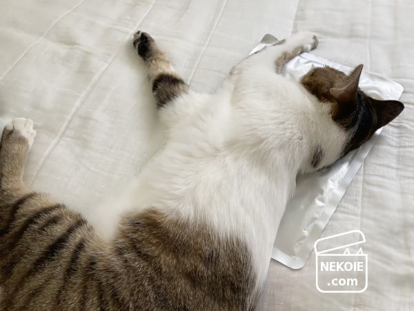 やはりじわじわとぬるくはなるけれど、冷やしすぎない感覚がとても気持ちいい。一度冷凍も試してみたのですが(留意点については前回の記事でふれています)あまりに冷たいとタオルなどに包む必要があり、たびたび冷えすぎだと感じたので、猫には二枚用意して常温のまま交互に使ってもらうのが理想的なように思えました。