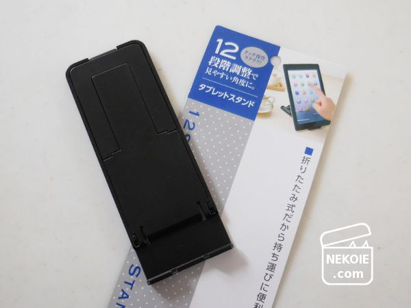 実はこの「タブレットスタンド」が100円ショップ(セリアやキャンドゥ)で売っていることを知ったのは、買った後のことでした。私が見つけたのは家電量販店で、価格は95円くらいだったので試してみることにしたんです。