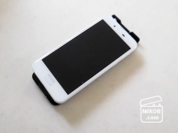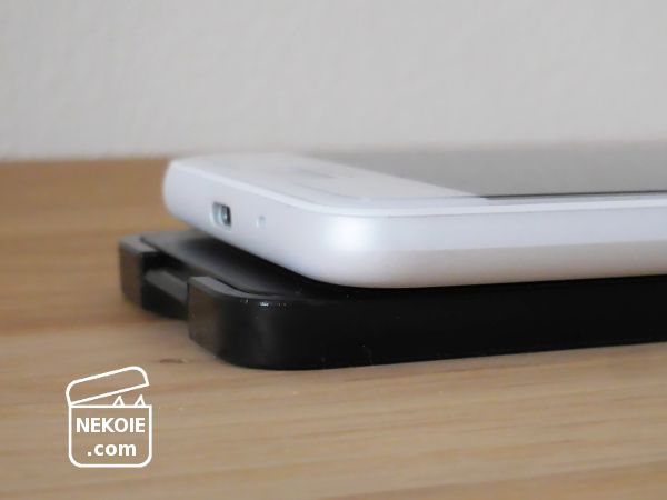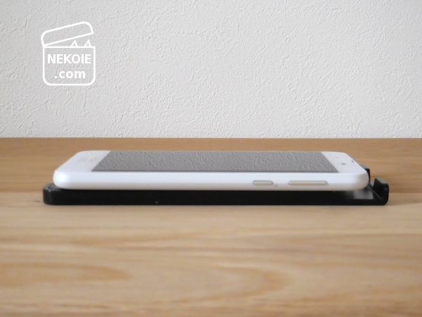 スマホ(タブレット)をのせる側の溝には1cm以上の余裕があるので、相当厚みのあるものでなければ、カバーをつけたままの端末でも問題なく立てることができます。