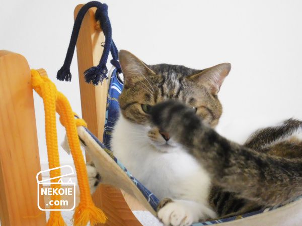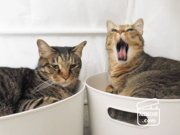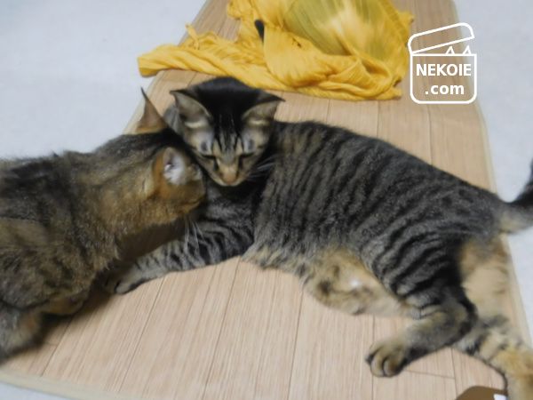 これは、いいおもちゃを弟猫から奪った兄猫。