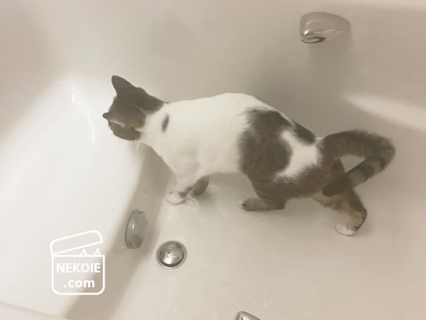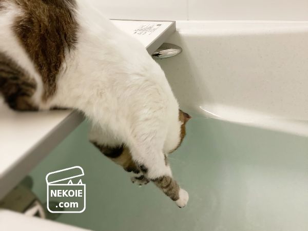 個性的といえば、お風呂の残り湯の中を歩きます。