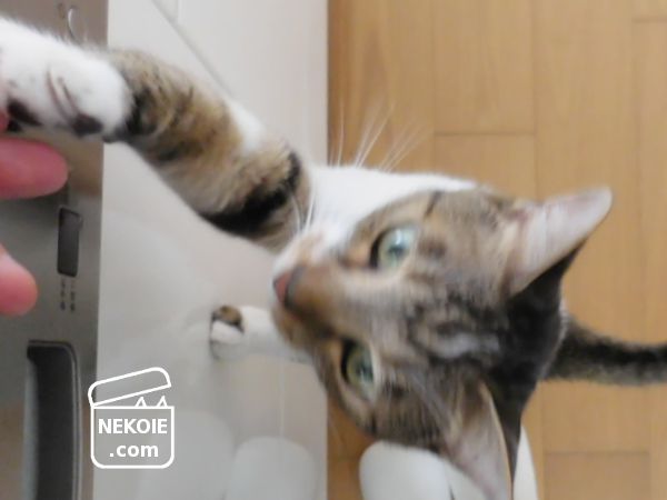これは鯛を見つけてイカ(耳)になった弟猫。