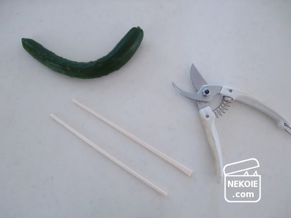 お盆に用意する精霊馬の脚(割り箸など)も園芸用ばさみで切っています。
