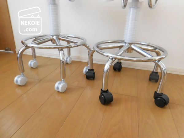 今はまだ標準品(白いキャスター)をつけたままにしていますが、今後二台目にもウレタン素材のキャスターを装着し直す予定です。