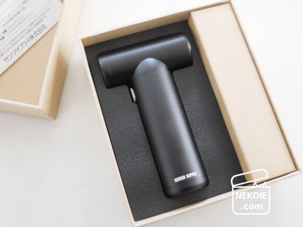 長年、気にしつつも買わなかったのは金額的な理由も大きかったのだけれど、缶タイプに比べて風量が少ない(弱い)、製品によっては短命でかえって高コストになる、といったレビューも見聞きしていたから。あとは単純に、一般的な家電と比べて実物を目にする機会がほとんどなく、電動タイプは一切使ったことがないという不安も購入に踏み切れない原因になっていました。