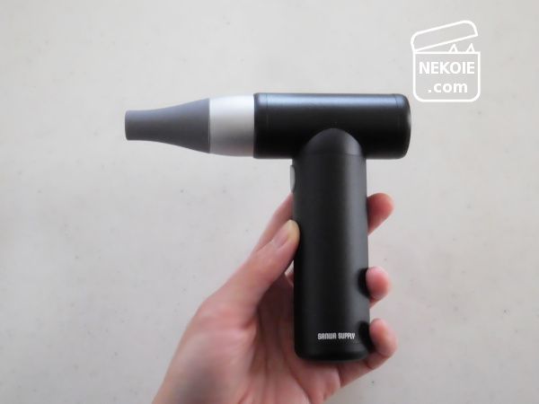 そうして手に入れたエアダスターの本体は、どことなくダイソンのヘアドライヤーを小さくした雰囲気(空洞ではありません)。