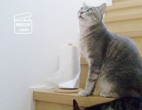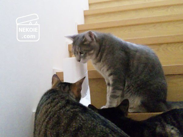 階段に置きっぱなしにしているわけではなく、写真を撮るとき猫に邪魔されないよう移動してきたのですが、ダメでした。