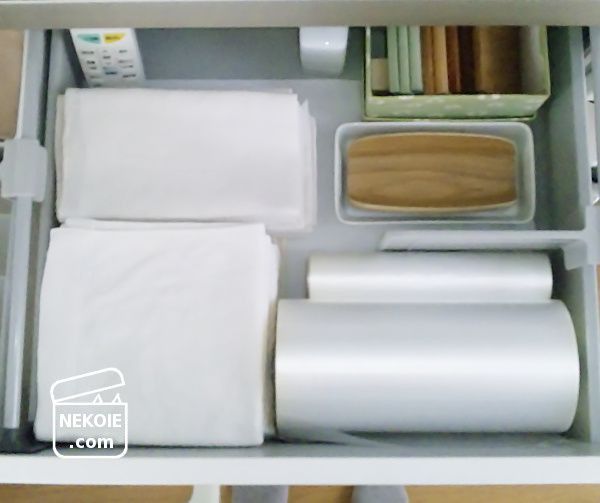 収納場所はキッチンの布巾やタオルと同じ引出しに寝かせて。
