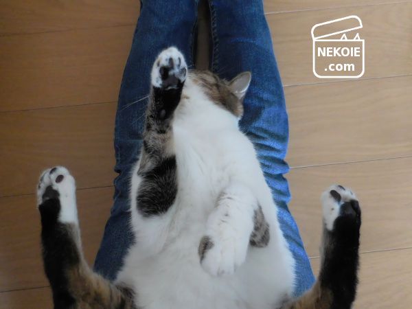 これは私の外出直前に抱っこを求めてきた弟猫の「俺を置いてくのかお前は……」のポーズ(?)です。