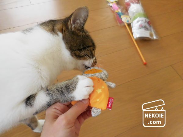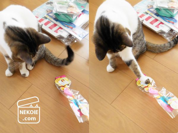 猫にも好みや相性があって、そういう意味での当たりはずれがあります。また年齢とともにおもちゃには興味を示さなくなる傾向も強いのですが、幸いうちの子たちは全部楽しんでくれそう。