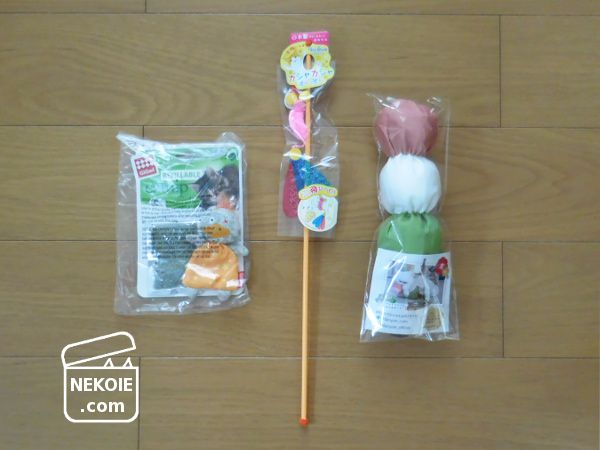 まずは猫といっしょに遊べるおもちゃが三つ。