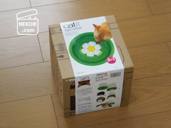 それから電動の給水器。水を循環させて流れをつくり、猫の(本来はあまり水を飲まない生き物=それが病気の原因になる=その予防のため)興味を引いたり、内部フィルターのろ過で浄水したりするアイテム。