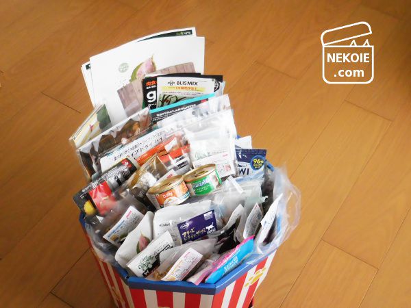 そんな状態の中で動物病院で買えるもの、通販で取り寄せられるもの、スーパーやホームセンターに並ぶもの、病状に対し許容範囲と思えるものを片っ端から試していたのですが、そのときにこの大量のサンプルフードが本当に役立ってくれたんです。
