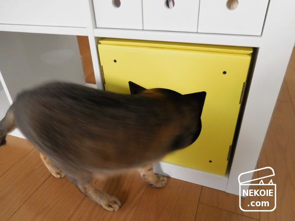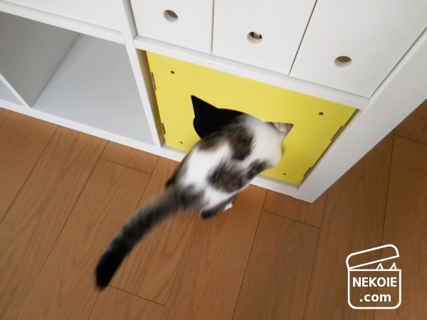 ダンボール製だったのでさすがにもう処分してしまったけれど、ちょうどリビングにあるIKEAの家具の一角にぴったり収まったため当時は大活躍。サイズ的にそれぞれの猫には単独で使ってもらうのが理想かな? と思ったけれど、