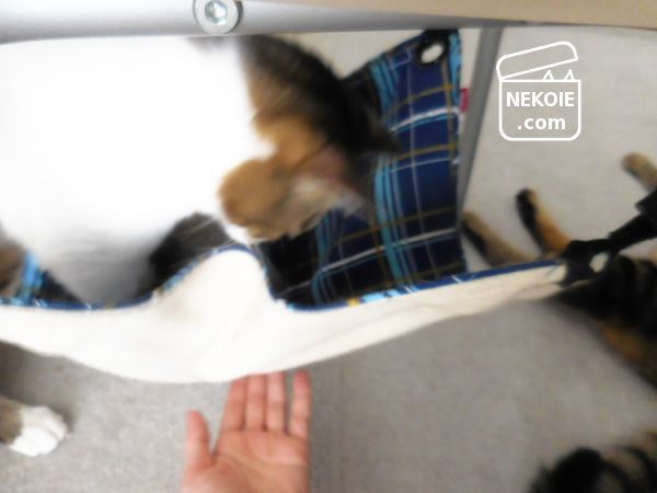 昨日みがいた椅子に、洗濯したニャンモックを再設置しました。