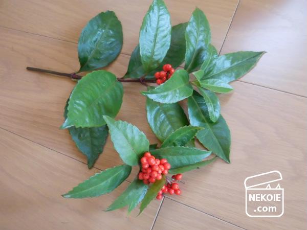 ちなみに赤い実は自宅の庭から収穫した千両。