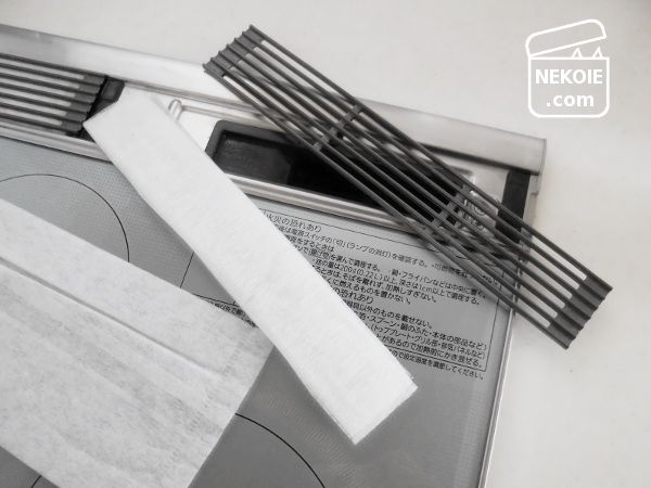 うちは魚焼きグリルを使わないのですが、IHコンロの熱もここから排出されるそうなので、アルミ箔をやめて不織布にしました。