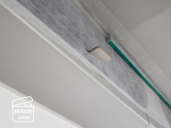 カラフルなマグネットは仕事部屋から拝借してきたものなので今後見直しますが(塗るか新調か)、設置方法の考え方としては悪くないかなと。この状態でクリスマス前から使っていますが、フィルターが落ちたり浮いたりということもないので、しばらく様子を見ることにします。
