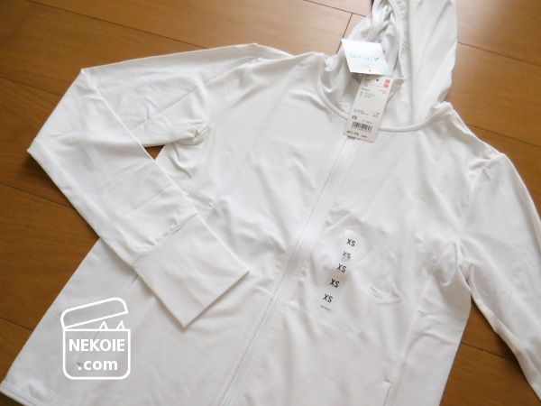 そして手に入れたのが、エアリズムのUVカットメッシュパーカ。2018年にもそっくり同じものを買っていました。ただサイズだけは異なり、今回買ったXSは最寄りの実店舗では販売されていない通販限定サイズなんです。