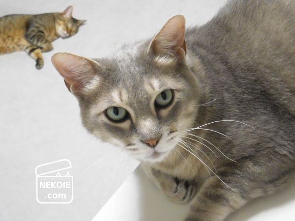 あまり写真を撮らせてもらえない兄猫に接近。