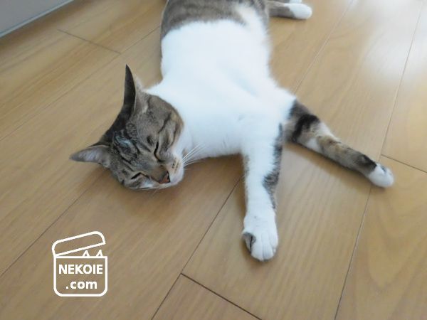 この後ちょっと向きを変えて、再び(やはりキッチンの床で)おやすみになりました。