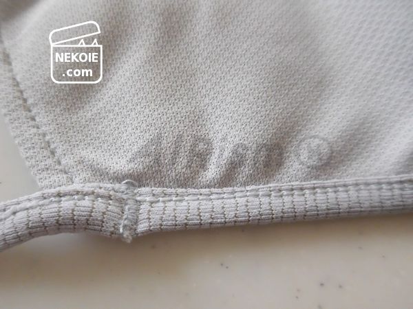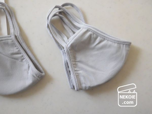 ただ私がMサイズを着用した場合、呼吸したり話したりするのにあわせて内側の生地と唇がたびたびふれます。三層になっているおかげで唇のラインが表地にまで出てしまうことはないように思いますが、ちょっと息が上がると口元全体に生地がかぶさるようになって息苦しさを感じることもありました。