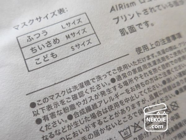 エアリズムマスクの場合「ネット使用」とは書き添えられているものの、「洗濯機で洗ってご使用いただけます」という文面には安心感を覚えました。