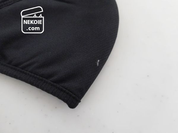 この白い線が見えるのは表側。外出用のマスクとして使うなら気になるかもしれません。ただ私の用途では毛玉同様ある程度許容できるので、もともとセール品であることを考えても交換などは申し出ないことにしました。