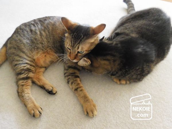 今日は週の前半よりも涼しく、ホッと一息つけたように思います。とはいえ夏日、兄猫たちは微妙な距離感を維持していました。