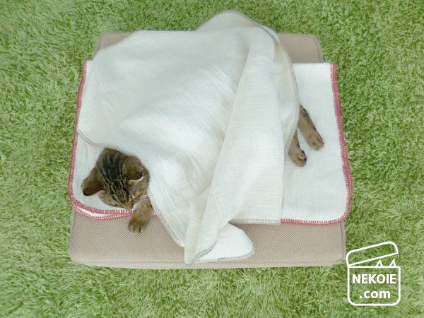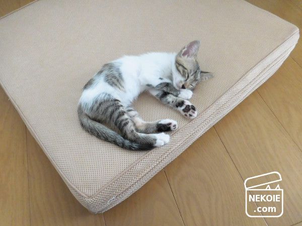 猫の寝床といえば、ふかふかのクッションを好む子もいれば、硬い板の上を好む子もいる。中には、たたんだタオルくらいの厚みを好むような子も。