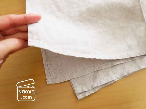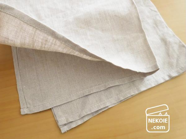 私が購入したショップでは、同じリネンでも「麻」や「亜麻」などの素材違いがありました。今回は両方を買ったのですが、写真は「亜麻」素材のほうです。