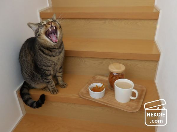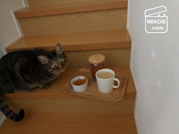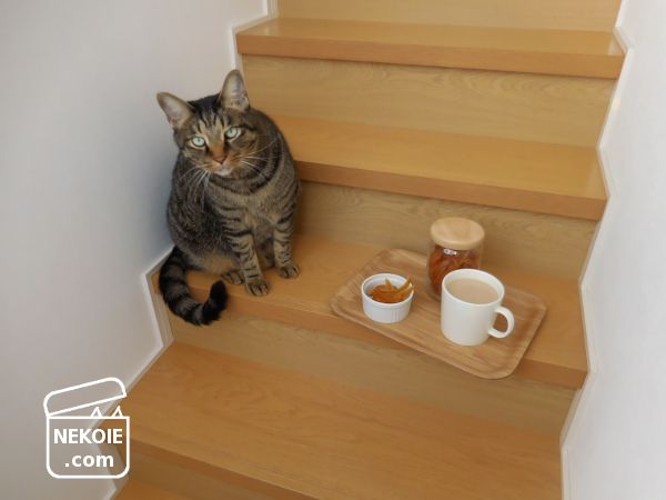 このあと抱っこを求めて飛びつかれ、階段を転げ落ちるところでした。こんなところで食べてはダメですね。とくにわが家では、とんだ危険行為でした。