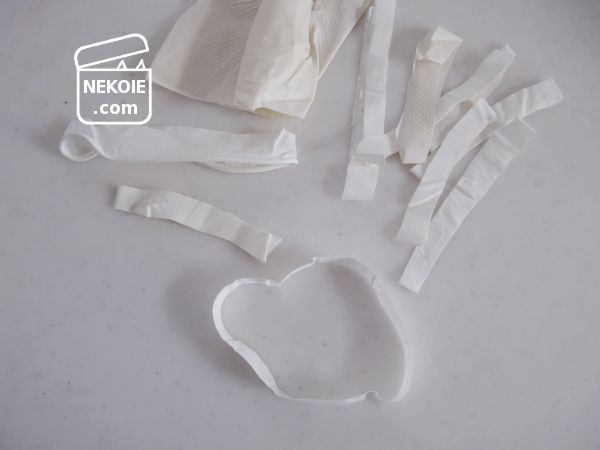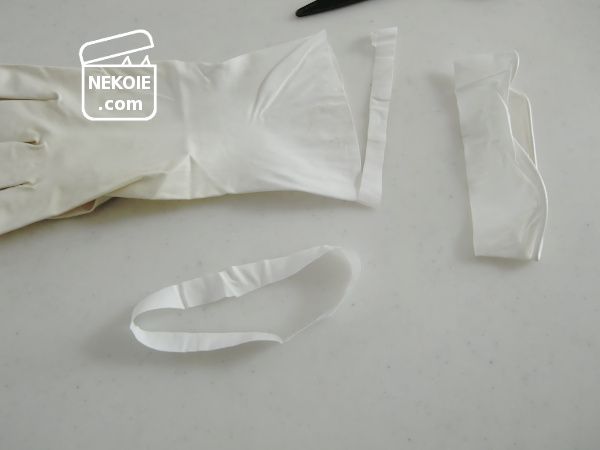 そういったものを小さく押しつぶした状態でまとめておくときに、輪ゴムやテープを使うことがあります。その輪ゴムを、ゴム手袋でつくっておくことにしました。