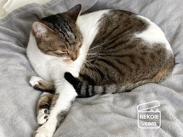 ぼんやりと眺めながら、手足の位置を確認したくなる寝相の弟猫。