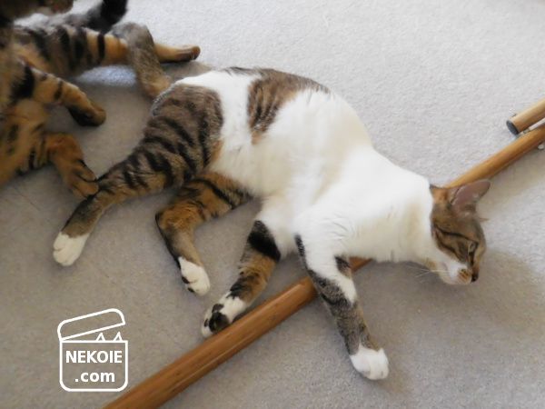 この日も少し蒸し暑くて思い思いに寝転がっていた猫たち。私もハンモックの上でごろごろしていました。