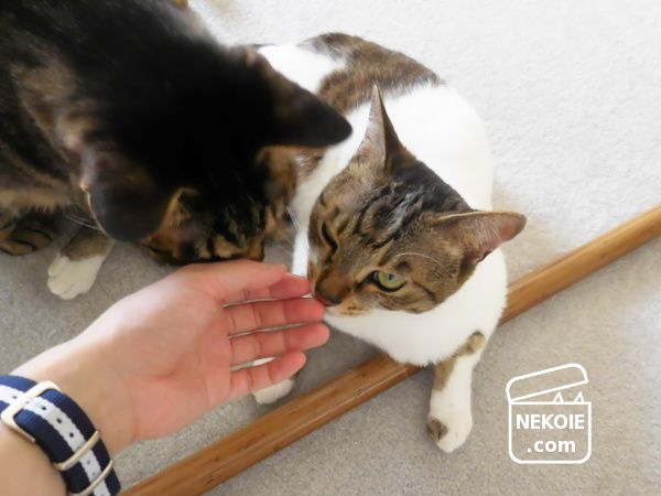 横から入った兄猫の頭突き。ちょっと笑ってしまいました。