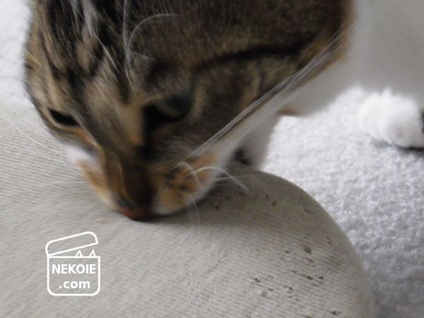 寄り添って暮らす中で、とれる対策はとってきたつもりですが、今回のクッションはひとまずあきらめることに。毎日重宝していたので代品をさがしたい気持ちもあるのだけれど、現状、ウレタン素材のクッション(猫がかぶりつける厚みのもの)などをわが家で新規採用するのは現実的ではないのだろうなと。