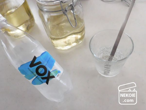 混ぜる割合は好みでよいと思うのですが、私の場合は先に梅シロップをグラスに1~2cm注ぎ、そこに炭酸水を。