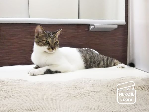 暑い季節は脱衣室と行き来しながら歩き回るのが楽しかった彼ですが、寒い季節は蓋の上でぬくぬくするのが好き。ただ、今みたいな季節はどうにも迷う様子。