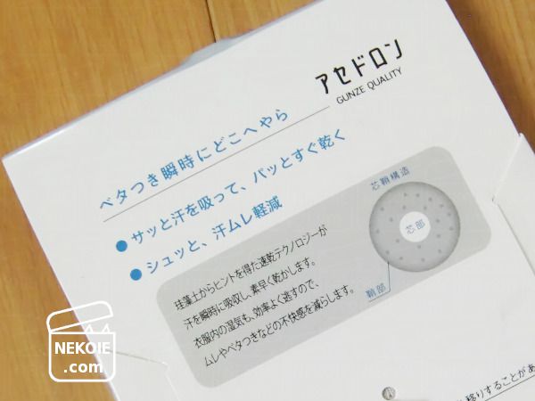 生地は全体的に薄手で、適度なさらさら感。化繊なので汗を吸うのかちょっと不安になる質感といえるかも。ただその生地自体も速乾性があるとのことで、汗をかいても蒸れない、におわないというのが特徴のようです。