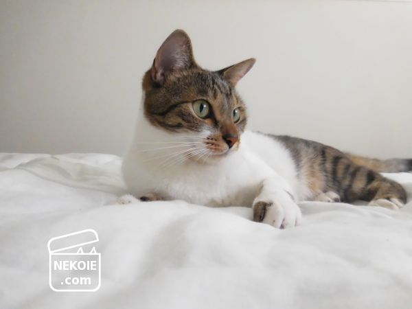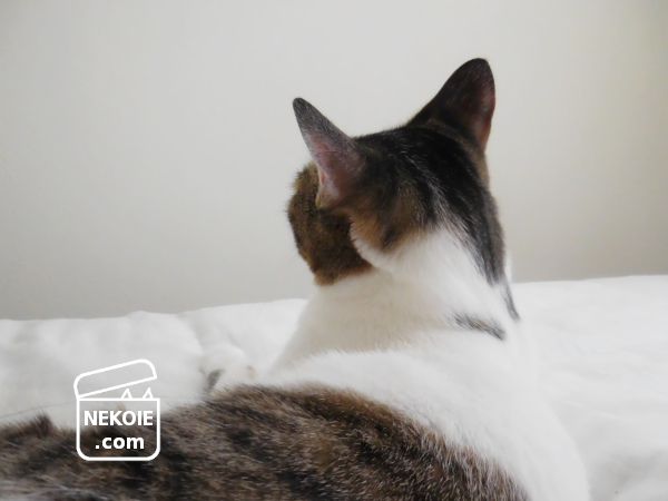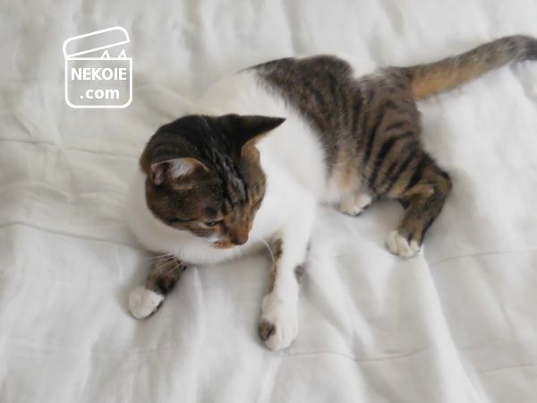 正確には、夜はくっついて眠り始めるのに、朝になると本来の寝床(弟猫だけで眠れるようにと用意した小さなベッド)に彼が移動しているんです。早朝の空が白み始める時分からすでに隣にいないので、私が寝入った後ほどなくして移っているのだと推測。