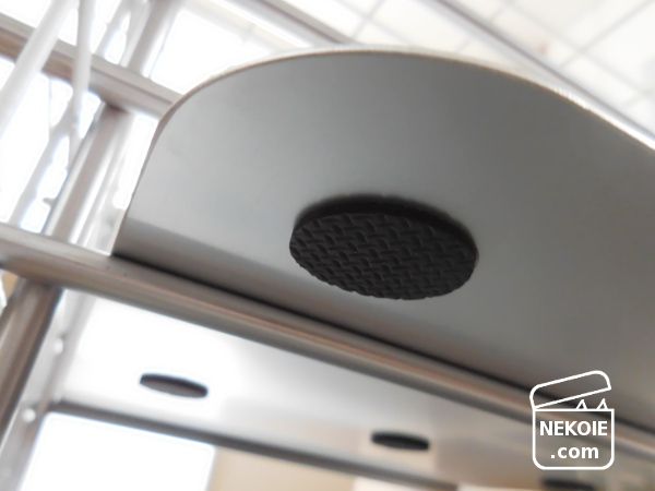 このアルミプレートの裏側には、敷いた床を傷つけないようクッション材がついているのですが、それがうまいこと枠にひっかかるのも思わぬ幸運でした。