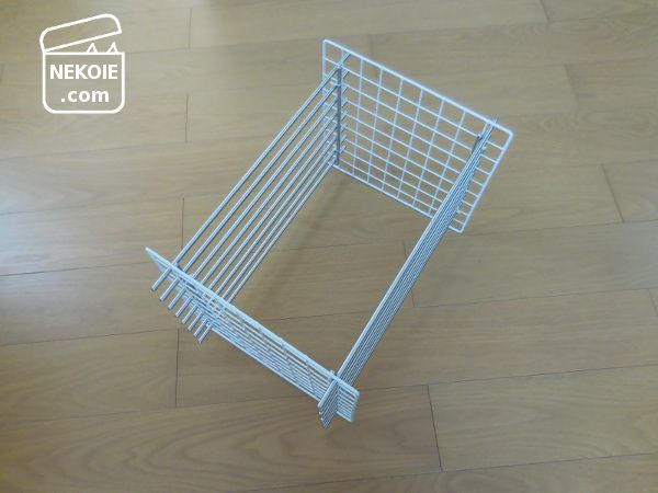 写真下半分に写っている白いワイヤーメッシュは、以前100円ショップで調達したもの。わが家ではたびたび形を変えながら多用途に使っているものの一部です。