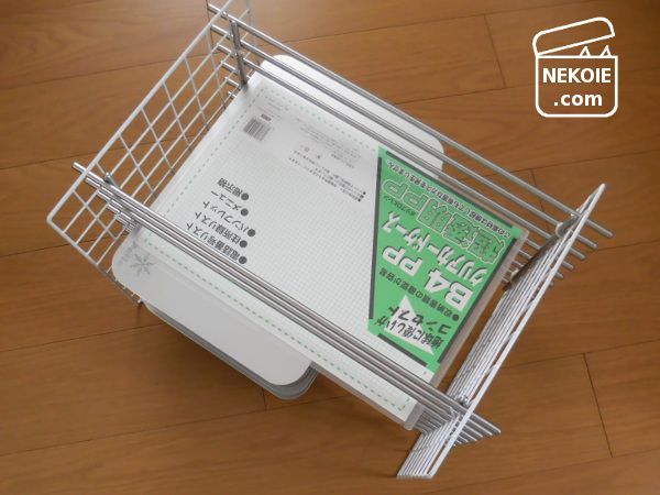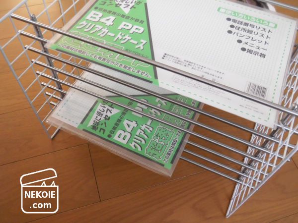 挿すのが書類一枚だけだとたわんでしまうので、それさえ防止できれば、棚板の横幅がジャストサイズでなくても気にしません。