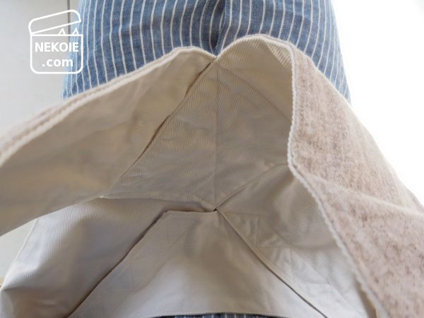 綿100%生地のおかげで静電気もおきにくく、洗濯もしやすいこの抱っこひも。当初、形状はただのクロスさせた布だと思っていたけれど、ところどころに赤ちゃんへの配慮だなあと思える曲線があって、縫い目も含めてとてもていねいなつくりでした。