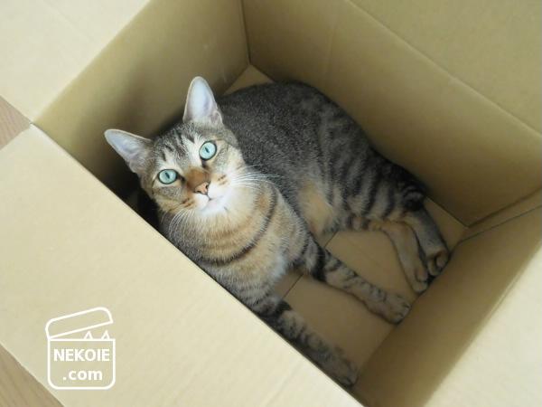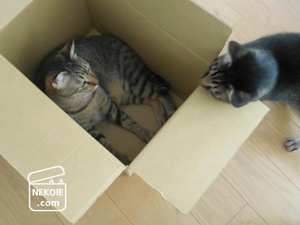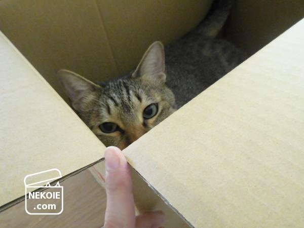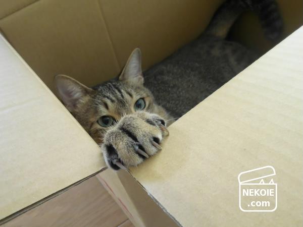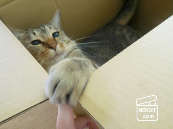 昨夜開梱したばかりのダンボールから、手が出ていました。