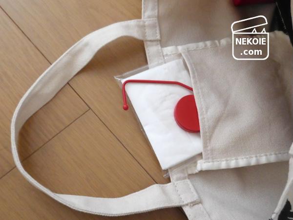 持ち歩くときは、ポケットティッシュと一緒に内側のポケットへ。ここならサッと出し入れすることも可能でした。