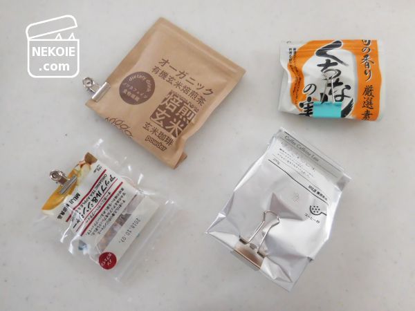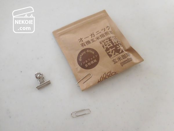 無印良品のコーヒー豆の袋にはファスナーはついていませんが、中央に内部の空気を調節するバルブ(細かい穴)がついているので、それを最後まで活かせるようにと思ったためです。